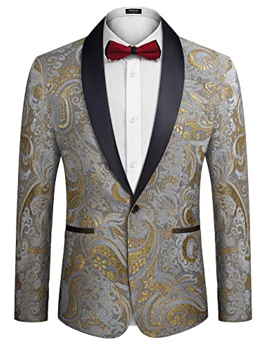COOFANDY Blommig klänning för män, lyxig broderad bröllopskavaj, middag, smoking, jacka för fest, Gray, L