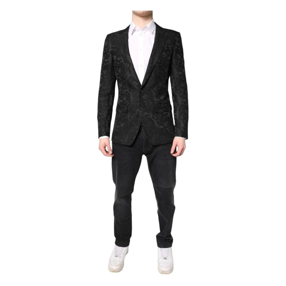 Dolce & Gabbana, Kostymer , Herr, S, Svart Blommig Jacquard Blazer Jacka