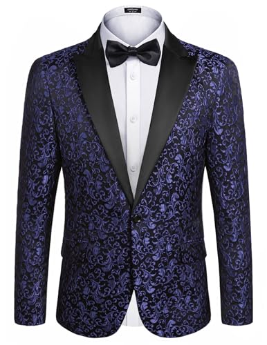 COOFANDY Blommig smokingjacka för män, broderad blazer för bröllop, kostym för festmiddag, marinblå, S
