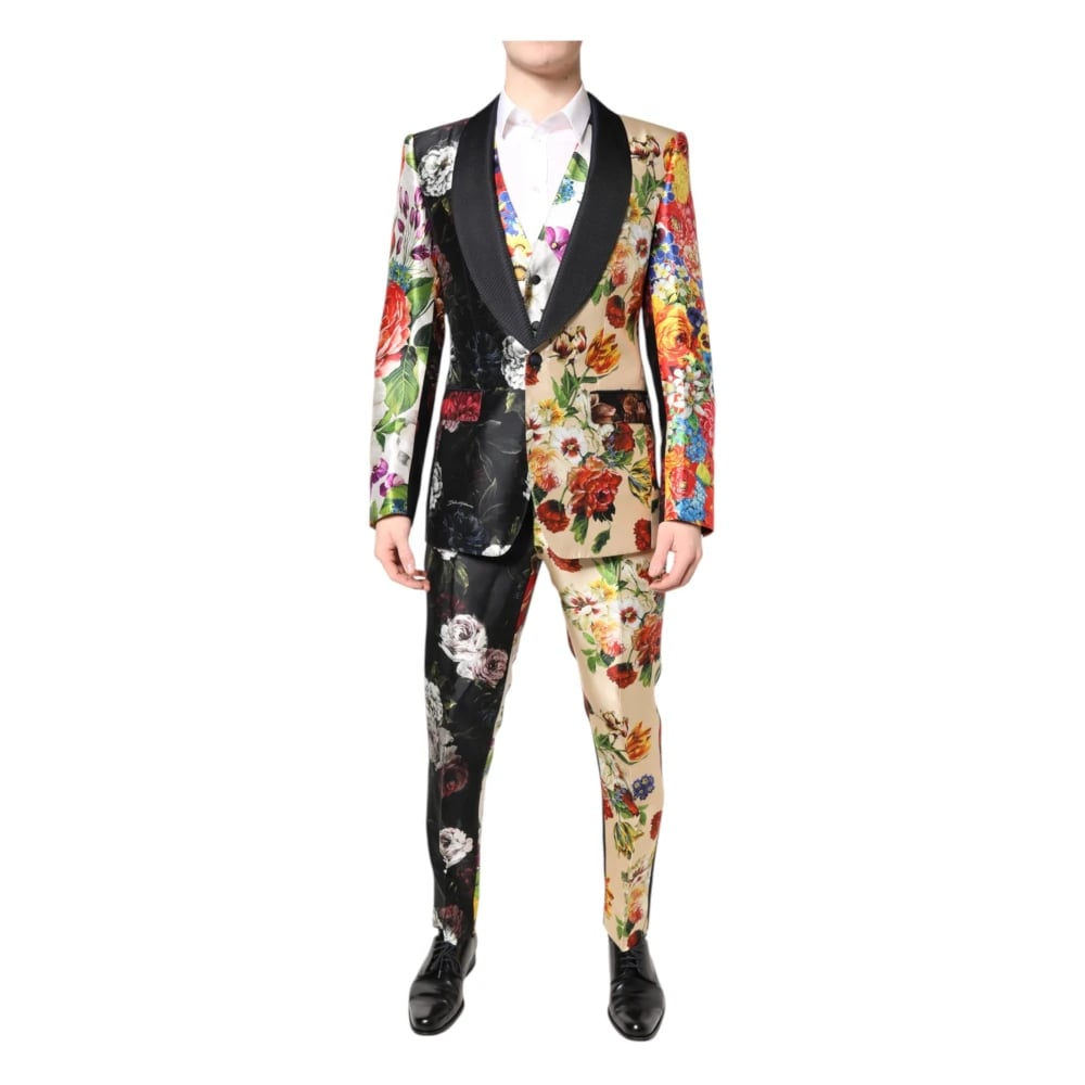Dolce & Gabbana, Kostymer , Herr, M, Polyester, Multifärgad Blommig Silke 3-Delat Kostym