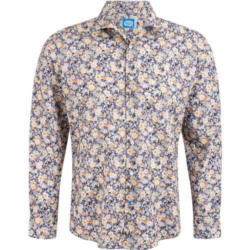 Panareha herr blommig skjorta Positano Navy, gul (XXL), Marinblå, gul, XXL