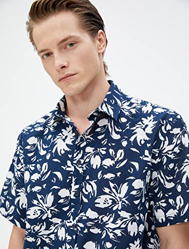 Koton Herr blommig kortärmad klassisk hals skjorta, Marindesign (02c), XL