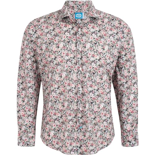 Coofandy Herr blommig tryckt skjorta långärmad paisley-button down skjortor för bröllop fest bal, svart, M