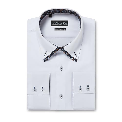Italiensk design herr vit med brun blommig dubbel krage långärmad formell skjorta, Vit blommig krage, M