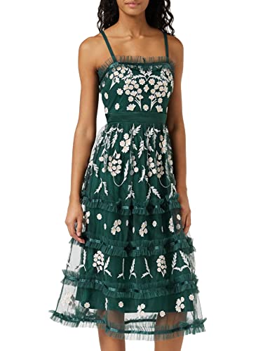 Maya Deluxe Dam Sommarklänning Embroidered Midi blommiga Straps High Waist A Line Cut Everyday Casual for Wedding Guest Prom Damkläder, Emerald Green, 36