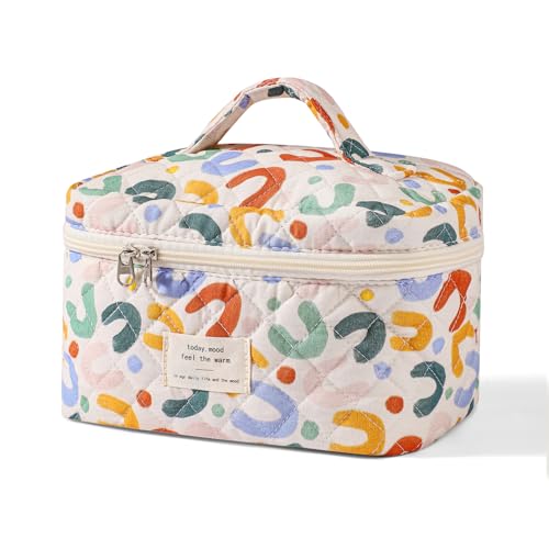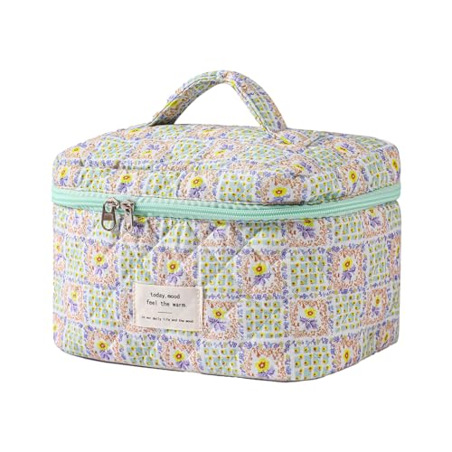uekeboag Stor quiltad sminkväska för kvinnor, blommig bomull kosmetisk väska, kokett estetisk blommig necessär organiseringsväska, 04gul-blomma, Blommig bomull
