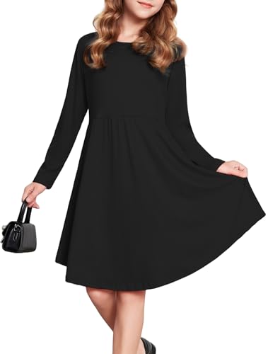 Parabler Flickklänning, långärmade klänningar, barn, bomullsklänning, vinter, blommig klänning, festlig klänning, A-linje klänningar med oregelbunden fåll, höst 5–15 år, Svart väska, 5-6 år