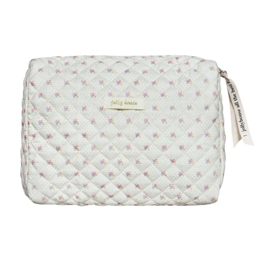 uekeboag Stor quiltad sminkväska för kvinnor, blommig bomull kosmetisk väska, kokett estetisk blommig necessär organiseringsväska, 05vit-uu, Blommig bomull