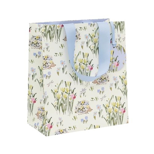 Glick medium presentväska, glad igelkott blommig, 225 x 200 x 100 mm, lyxig återvinningsbar väska för födelsedagar och fester