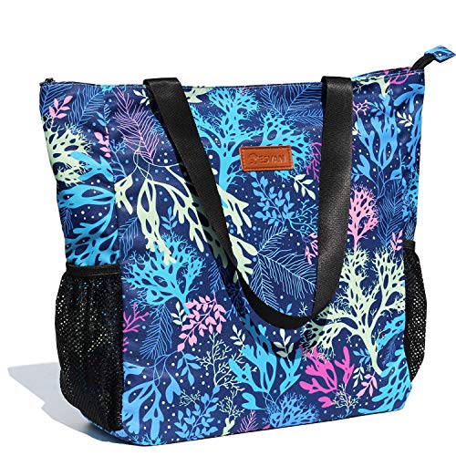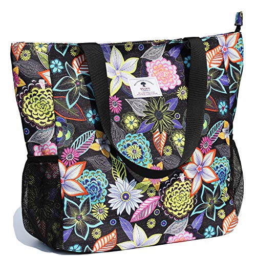 ESVAN Original blommig vattentålig stor tygväska axelväska för gym strand resor dagliga väskor uppgraderade, [E] F, Large
