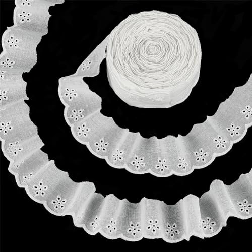FINGERINSPIRE 13,7 m bomullskant 42 mm elfenbensvit bomull öljett spetsband blommigt broderi volang spetskant vågig kant blommig bomull spetsband för sömnad klänningar väskor husdjurskläder
