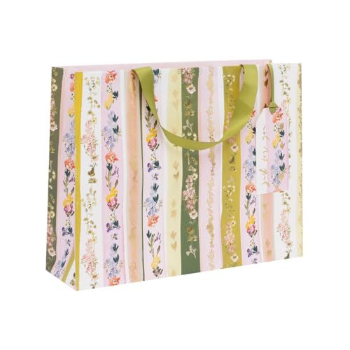 Glick stort landskap presentväska, Linea Blommig, 275 x 355 x 100 mm, lyxig återvinningsbar väska för födelsedagar och fester