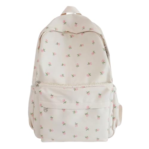 2023 söt Preppy väska blommig tryckt Kawaii ryggsäck Cottagecore estetisk ryggsäck laptop dagväska, Vitt, Vardagsryggsäckar