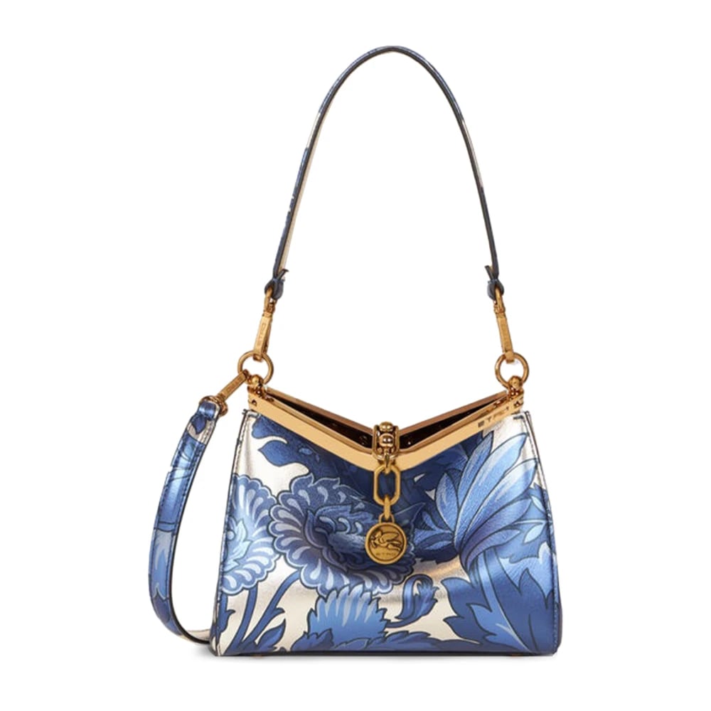 Etro, Väskor , Dam, ONE Size, Läder, Blommig Blå Läder Axelväska