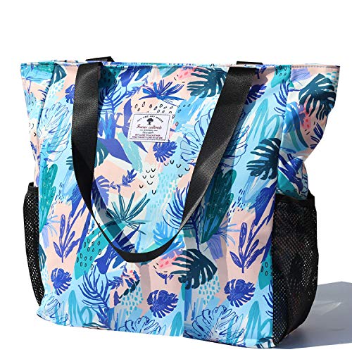 ESVAN Original blommig vattentålig stor tygväska axelväska för gym strand resor dagliga väskor uppgraderade, Blå blommig löv-uk, Large