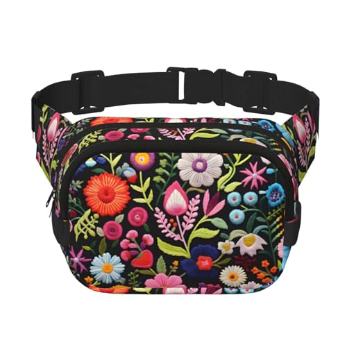 Broderad blomma dubbelt lager midjeväska paket vår blommig rumpa väska midjeväska för män kvinnor, justerbar bältesväska för resor vandring löpning cykling festival