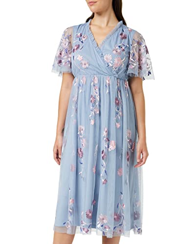 Frock and Frill Blommig broderad klänning för kvinnor, speciella tillfällen, blå, 12, BLÅ, 38 SE