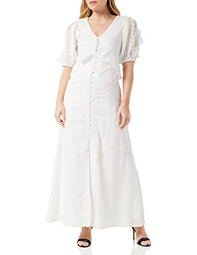 Frock and Frill Blommig broderad klänning för kvinnor, speciellt tillfälle, benvit, 14, Benvit, 40 SE