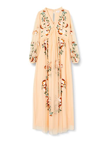 Frock and Frill blommig broderad klänning för kvinnor speciellt tillfälle, Mandel, 38 SE