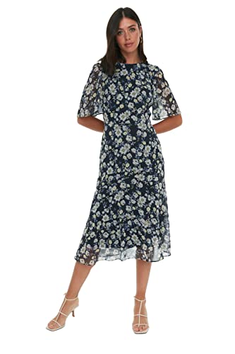 Frock and Frill Blommig broderad klänning för kvinnor, speciella tillfällen, marinblå, 12, Marinblått Xsp, 38 SE