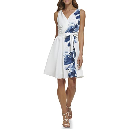 DKNY Ärmlös V-ringad blommig klänning cocktailklänning dam, Elfenben/marinblå, 38