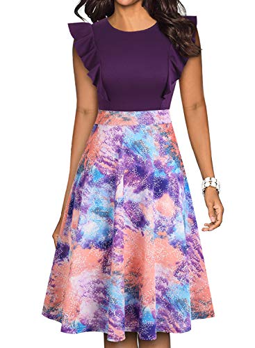 YATHON Dam vintage volang blommig utsvängd A-linje swing casual cocktailparty klänningar, Yt001-lila Zr P1, XL