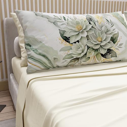 PETTI Artigiani Italiani - Bomullslakan med örngott i digitalt tryck, fransk halvkvadrat lakan, mönstrad blommig salvia grädde, 100% tillverkad i Italien