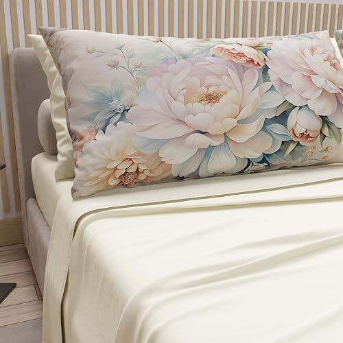 PETTI Artigiani Italiani - Bomullslakan med örngott i digitalt tryck, lakan för enkelsängar, mönstrad blommig 35 grädde, 100% tillverkad i Italien