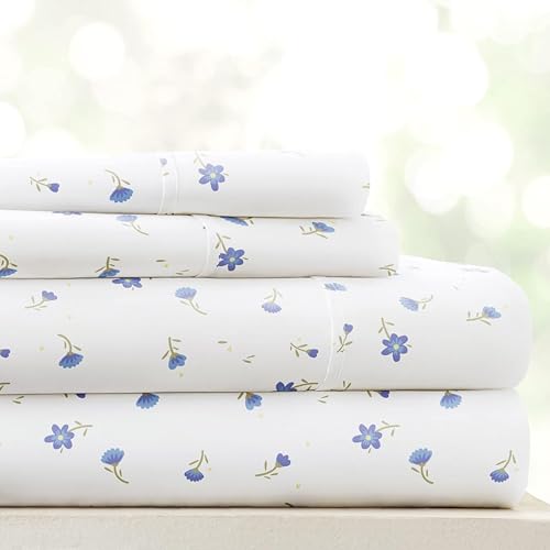 Linen Market 4-delat bäddset i king size-storlek, sov bättre än någonsin i dessa ultramjuka och kylande lakan, 40 cm djupa fickor som fästs över madrassen (ljusblå blommig)