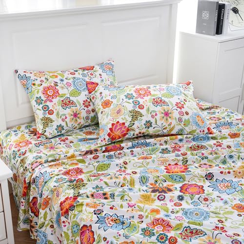 MEISHANG Queen-lakanset– blommiga lakan, djupa hörn, ultramjukt borstad mikrofiber med upp till 40 cm madrasser – skrynkelfritt – 4 stycken (Queen, vårblomma)