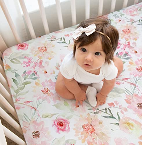 Lakan för babyflickor | Blommiga ultramjuka sängkläder för spjälsängsmadrass och småbarnssängar |Blandad bomull, formsytt spjälsängslakan för babyflickor, komfort och elegans från Max&So