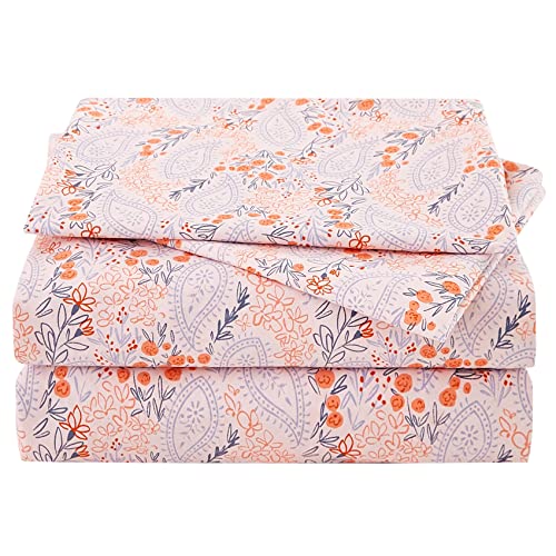 Eddie Bauer - Set med två lakan, premium bomull percale sängkläder, blommig heminredning, Oeko-Tex-certifierad (träblock blommig blå, tvilling)