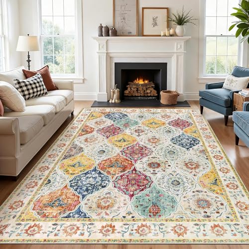 SHACOS Vintage tvättbara mattor vardagsrum stor 160 x 230 cm boho mjuk kort lugg matta marockansk matta nödställd blommiga mattor halkskydd accentområde matta för sovrum matsal, färgglad