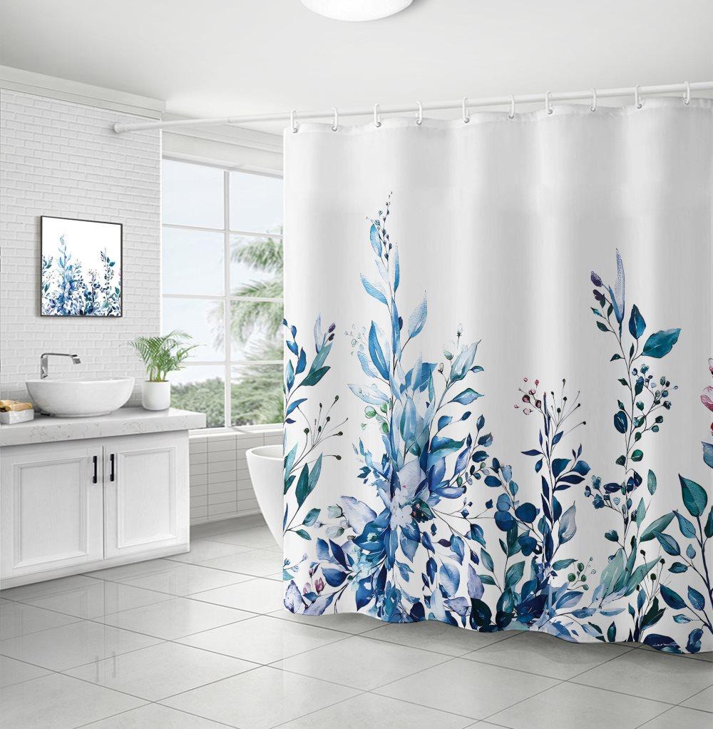 Gibelle blått eukalyptus duschdraperi, akvarell växtlöv med blommigt badrum duschdraperi set med krokar, 182 x 182 cm