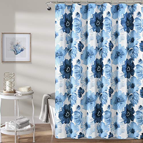 Lush Decor Leah blommigt duschdraperi, 183 B x 183 cm L, marinblå och vit, vackert blått duschdraperi, vårdekor, färgglada blommor, natur-, stug- och lantlig badrumsdekor