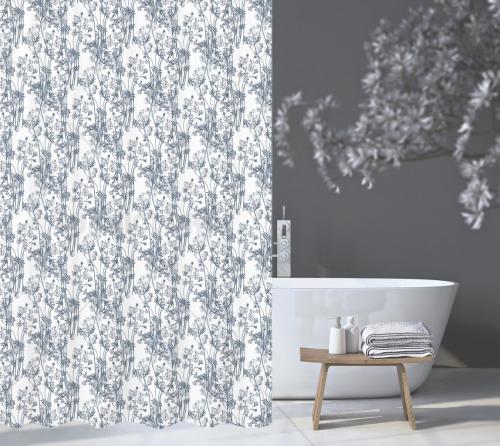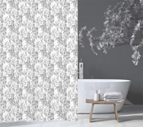 Komfortutrymmen Enya badrum duschdraperi blommigt tryck söt elegant mikrofiber tyg badgardiner, 183 cm x 183 cm, lila/grå