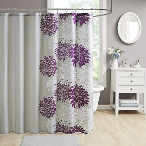 Frodig dekor Leah blommigt duschdraperi, 183 cm B x 183 cm L, lila och grå – vackert lila duschdraperi – vårdekor – färgglada blommande blommor – lantlig stuga och bondgård badrumsdekor