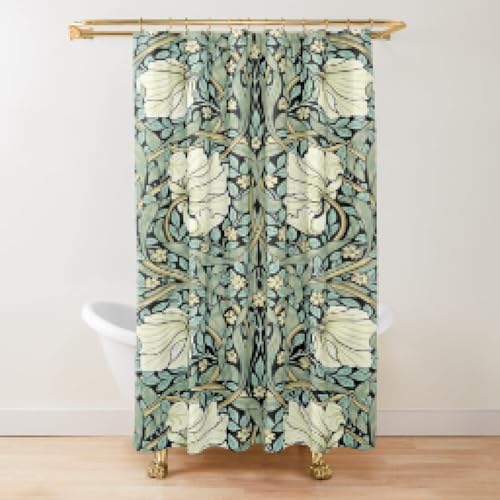 AUWUUA William Morris blommigt duschdraperi 100 x 210 cm, grön gul, vintage, rustik, för badrumsinredning, Boho vattentätt tyg duschdraperi med krok