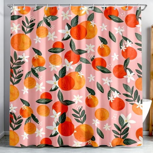 GHMO Persika duschdraperi för badrum tropisk frukt orange aprikos blommor löv blommigt duschdraperi set med 12 krokar vattentätt polyestertyg