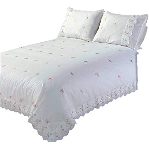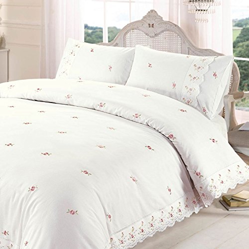 Appletree – Blommigt broderi, vitt påslakan – Super King sängkläder storlek (260 x 220 cm) – mjukt trådtäthet 200% naturlig bomull – 2 örngott – lyxiga vita sängkläder med blombroderi