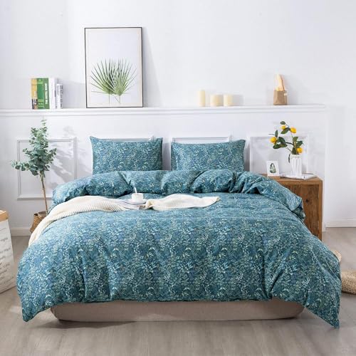 Blommigt påslakan king size, lättskött polyester-bomull sängklädesset, vändbara sängöverdrag, blågrön