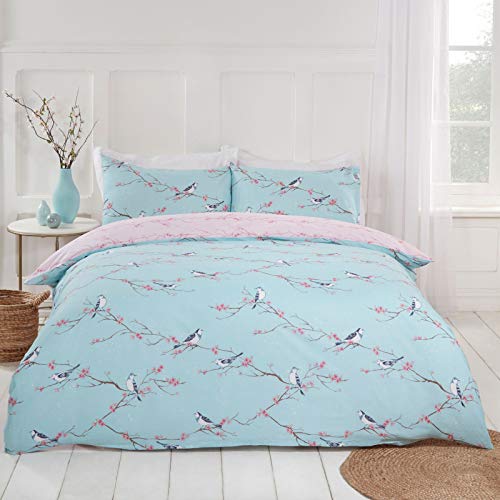 Dreamscene Blossom Bird vändbart blommigt påslakan med örngott sängklädesset, anka ägg rodna – kung