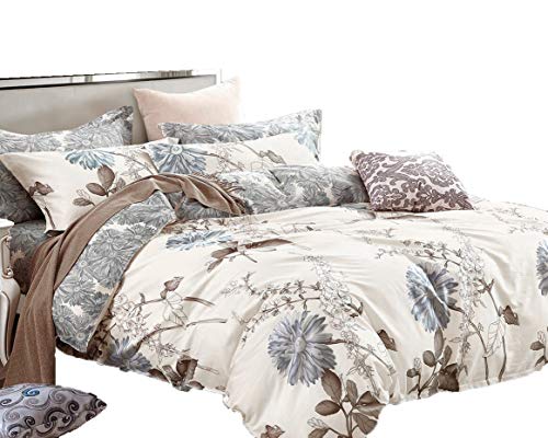 mixinni Blått blommigt påslakan, bäddset i king size i trädgårdsstil med blixtlåsstängning, lyxig kvalitet, mjukt, hållbart och enkel skötsel (3 delar, king size)