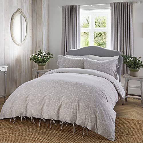 Appletree – grått blommigt påslakan – super king sängkläder storlek (260 x 220 cm) – mjuk 100% bomull satin – bandband slipsar – 2 örngott – vintage sängkläder med blommönster – botaniskt sängset