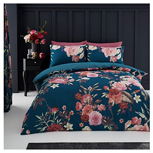 Laurence Llewelyn-Bowen - kungligt blommigt påslakan - King Bedding Size (230 x 220 cm) - mjuk 100% bomull - 2 örngott - lyxigt bäddset med blommor - blått blommigt påslakan - Mayfair Lady