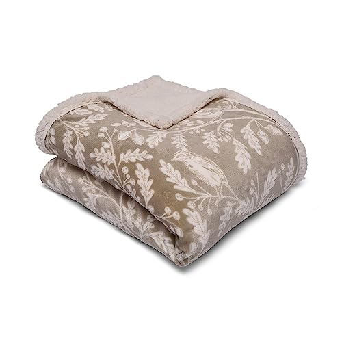 Dreams & Drapes – grå uggla överkast (150 cm x 200 cm) – supermjuk och mysig fleece – fleecefilt i grått – skogsgrå sängkläder – uggla och blommigt överkast – matchande påslakan tillgängligt