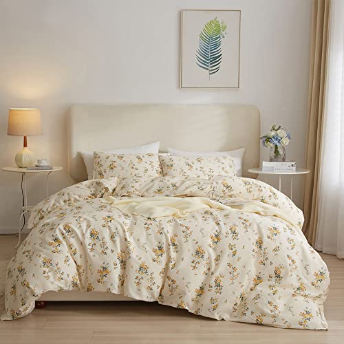 EAVD Gult botaniskt blommigt påslakan drottning mjuk bomull vändbara blommiga bäddset helt estetiskt 1 botaniskt påslakan med 2 örngott elegant trädgård blomma sängkläder set för flickor kvinnor