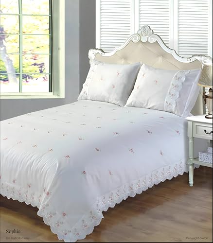 Sophie Påslakan blommigt spetskant broderat sängset, polyesterbomull, vit, enkel