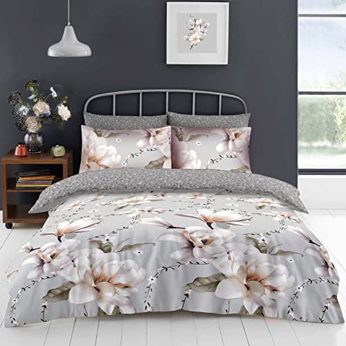 Gaveno Cavailia Blommigt påslakan täcke med kuddfodral, vändbar, polybomull, Eden, enkelsäng storlek, polybomull, grå Florens
