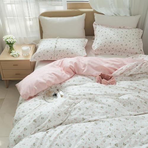 LifeTB Tb Tjej påslakan dubbel rosa vit blomtryck sängkläder uppsättningar trädgårdsstil blommig täcke bomull estetiskt överdrag elegant blommigt sovrum kollektion 1 påslakan med 2 örngott